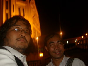 Ang may-akda kasama si Prop. Vic Villan sa harapan ng Templo Sentral ng INC (Sariling-kuha ni Michael Chua).