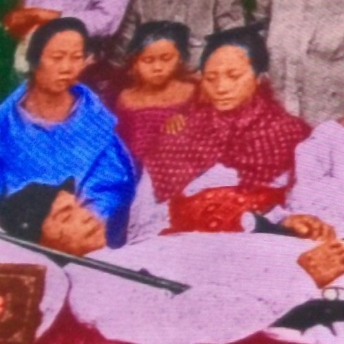 Ang tanging larawan ni Emilio Jacinto ay ang recuerdo de patay na ito na kinunan nang mamatay ang bayani. Ang buntis na babae na nakatingin sa kanyang mukha ay si Catalina de Jesus. Mula kay Dr. Ambeth Ocampo.