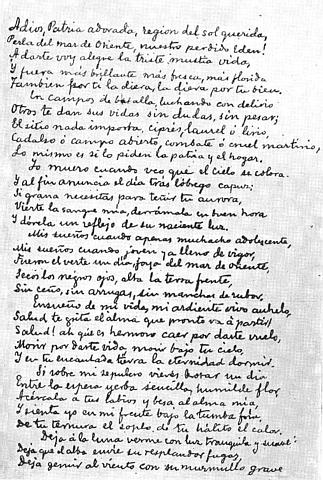 First page of the “Mi Ultimo Adios” in Rizal’s own handwriting