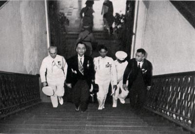 Manuel Quezon na umaakyat ng taas noo sa mga hagdan ng Palasyo ng Malacanan bilang pangulo ng Pilipinas, 15 November 1935.