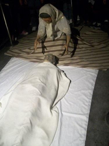 Si Rizal na ipinagluluksa ni Inang Bayan. Dalawa sa mga manikin sa Intramuros and Rizal Light and Sound Museum sa rekonstruksyon ng Beaterio de la Compania de Jesus (Beato), Calle Victoria, Intramuros, Maynila.