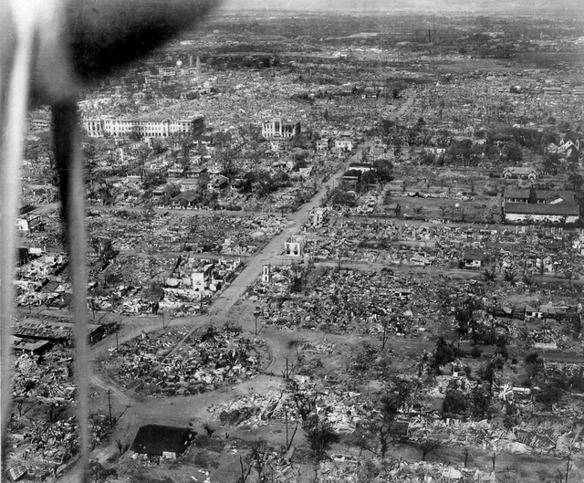 Malate, Philippine Women’s University at Remedios Circle matapos ang liberasyon. Sa kabila ng pagkawasak, paggahasa at kamatayan na ito, patuloy na nagsilbi ang ating mga bayaning doktor. Mula sa koleksyon ni Dr. Luis Camara Dery.
