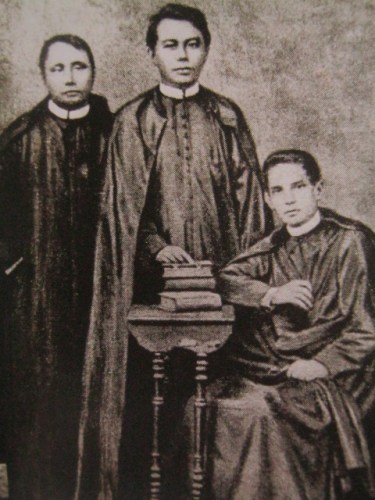 Padre Mariano Gomes, Padre Jacinto Zamora at Padre José Apolonio Burgos, malamang sa malamang composite na larawan. Mula sa Kasaysayan: The Story of the Filipino People.