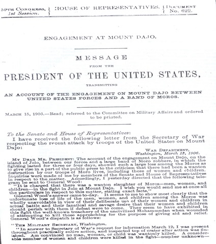 Ngunit hindi lahat ay sumang-ayon. Isang kongresistang Amerikano, si John Sharp Williams ang nagbasa ng isang tula na nagsasalaysay at kumokondena sa masaker habang ang popular na manunulat ng Adventures of Tom Sawyer at ng Huckleberry Finn na si Mark Twain, isang tunay na kaibigan ng mga Pilipino, ang sarkastikong nagsabi, “The enemy numbered six hundred-including women and children-and we abolished them utterly, leaving not even a baby alive to cry for its dead mother. This is incomparably the greatest victory that was ever achieved by the Christian soldiers of the United States.”