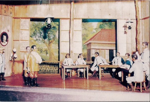 Diorama ukol sa paglilitis kay Andres Bonifacio sa Ayala Museum.