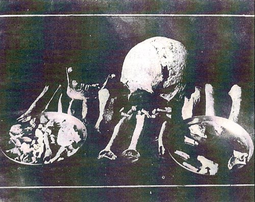 Isang set ng mga buto na natagpuan sa Hulog, Mt. Nagpatong, sa paanan ng Bundok Buntis. Mula kay Dr. Ambeth Ocampo.