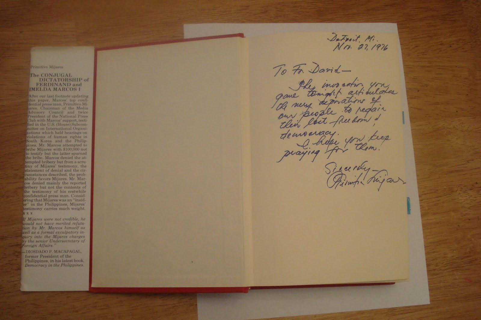 Autograph mula kay Primitivo Mijares, isang huling mensahe para sa bayan? Mula sa http://thelivingrice.blogspot.com/2009/12/remembering-primitivo-mijares-and-his.html.