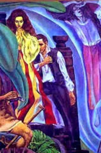 Si Elias, si Maria Clara at si Crisostomo Ibarra. Obra maestra ni Carlos “Botong” Francisco.