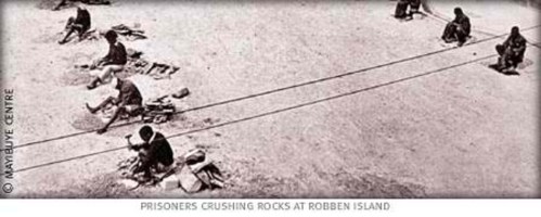 Mabigat na pagtatrabaho ng pagsisibak ng mga bato sa piitan ng islan ng Robben.