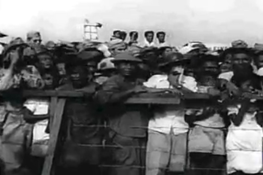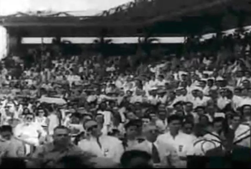 Ang panunumpa ni Quezon bilang Pangulo ng Komonwelt sa harapan ng gusali ng lehislatura (ngayon ay National Art Gallery) noong November 15, 1935. Mula kay Carlos Quirino.