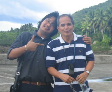 Si Xiao Chua sa harapan ng Quezon Memorial Monument na may 66 metrong taas na kumakatawan sa 66 na taon sa buhay ni Quezon. Ang tatlong anghel ay kumakatawan sa pagluluksa at pagpupugay ng Luzon, Visayas at Mindanao. Kuha ni Florenda Pangilinan mula sa Koleksyon ng Sinupan ng Aklatang Xiao Chua.