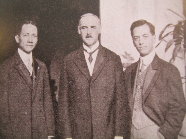Si Osmena at Quezon kasama si Gobernador Heneral Francis Burton Harrison. Mula sa Manuel Luis Quezon nina Edgardo J. Angara at Sonia P. Ner.