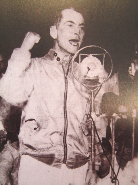 Isang larawan ni Quezon habang nagtatalumpati. Mula sa Manuel Luis Quezon nina Edgardo J. Angara at Sonia P. Ner.
