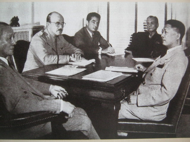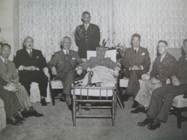 Si Quezon kasama ang kanyang gabineta sa kanyang sick bed. Mula sa Manuel Luis Quezon nina Edgardo J. Angara at Sonia P. Ner.
