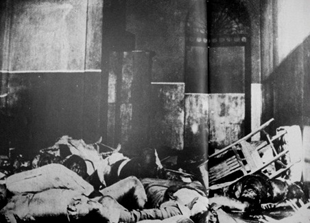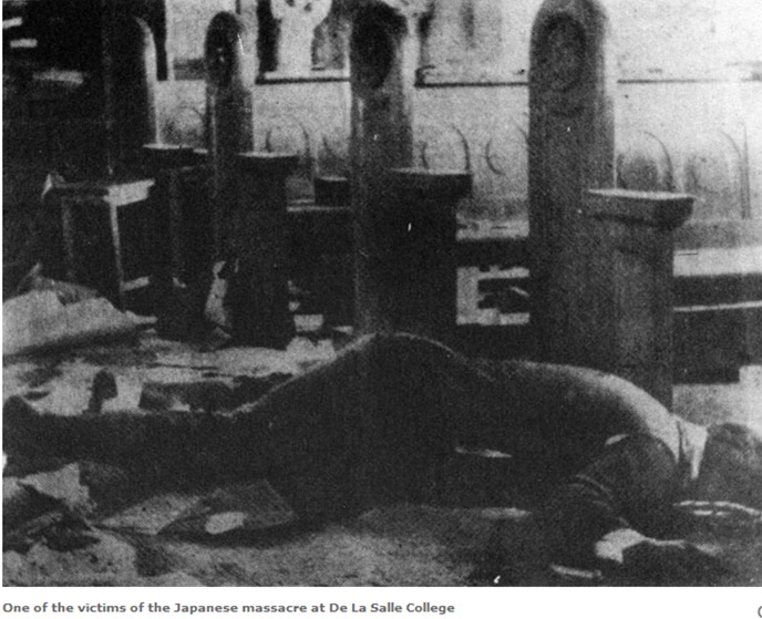 Ito ang itsura ng mga katawan na nagatong-patong sa malapit sa cellar at hagdan patungong chapel. Mula sa La Salle: 1911-1986.