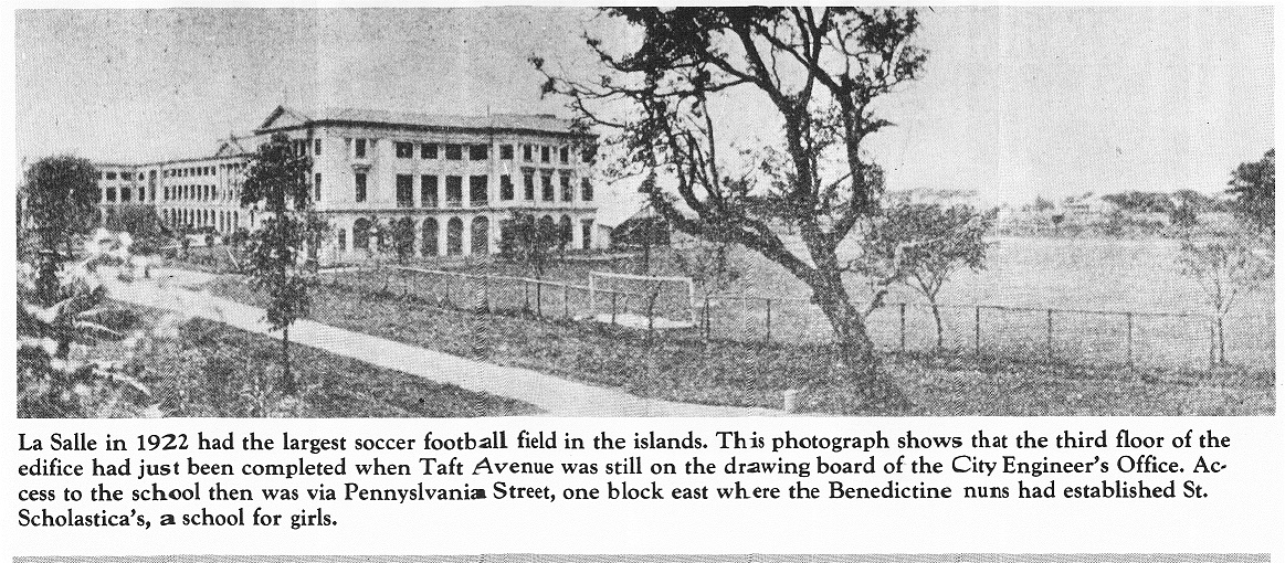 (Pook Amorsolo, UP Diliman, 8 June 2013, salamat sa pananaliksik nina Carlos Quirino at Jose Victor Jimenez at sa mga larawan mula kay Sunny Velasco at sa mga aklat na La Salle: 1911-1986, at The Future Begins Here.)