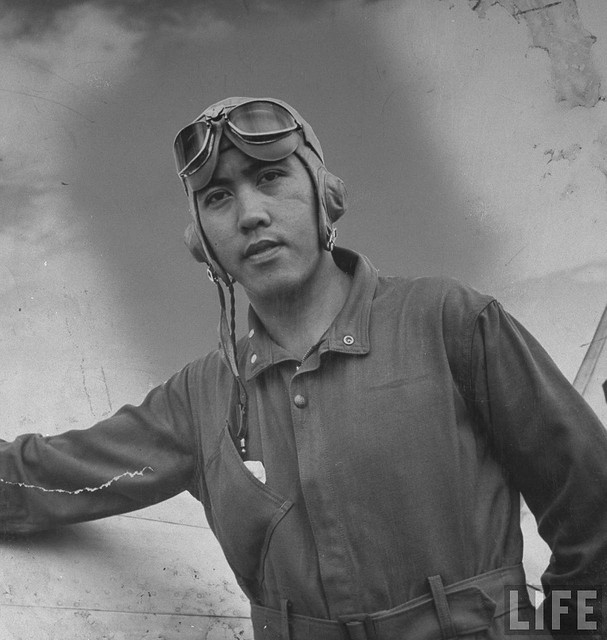 Bayani ng digmaan Jesus Villamor, sa kanya ipinangalan ang Villamor Air Base, ang punong himpilan ng Philippine Air Force. Mula sa LIFE.