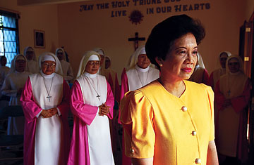 Si Cory Aquino habang bumoboto sa Tarlac noong snap presidential elections ng 1986. Mula sa Nine Letters.