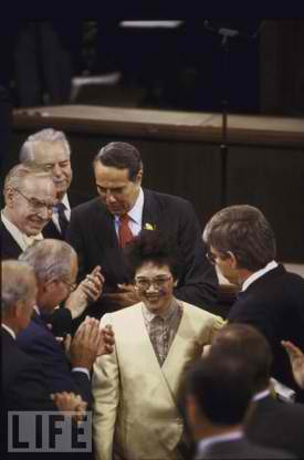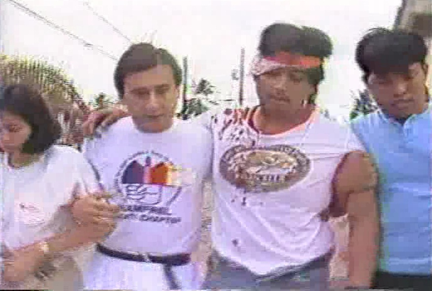 Si Reagan habang sinasabi na may posibilidad na nandadaya ang dalawang panig “both sides” noong halalang 1986. Ngunit ito ay tinutulan naman ng mga US observers tulad nina Richard Lugar at John Kerry na sumama. Mula sa A Dangerous Life.