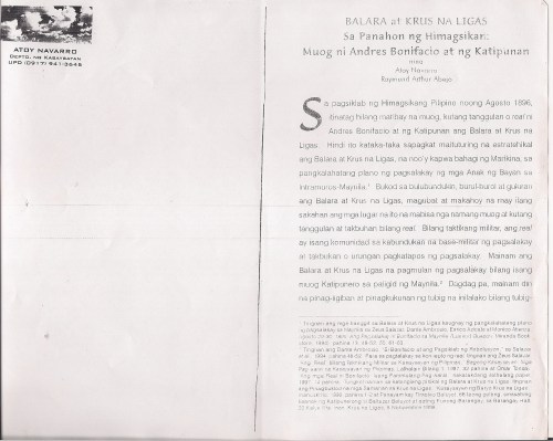 Navarro, Arthur M. and Raymund Arthur G. Abejo (eds). Wika, Panitikan, Sining at Himagsikan. Lungsod Quezon: LIKAS, 1998.