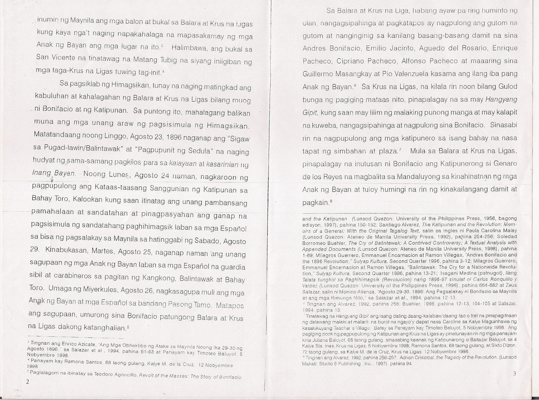 Guerrero, Milagros C., Emmanuel N. Encarnacion and Ramon N. Villegas. “Andres Bonifacio and the 1896 Revolution,” Sulyap Kultura, Second Quarter 1996, pp. 3-12.