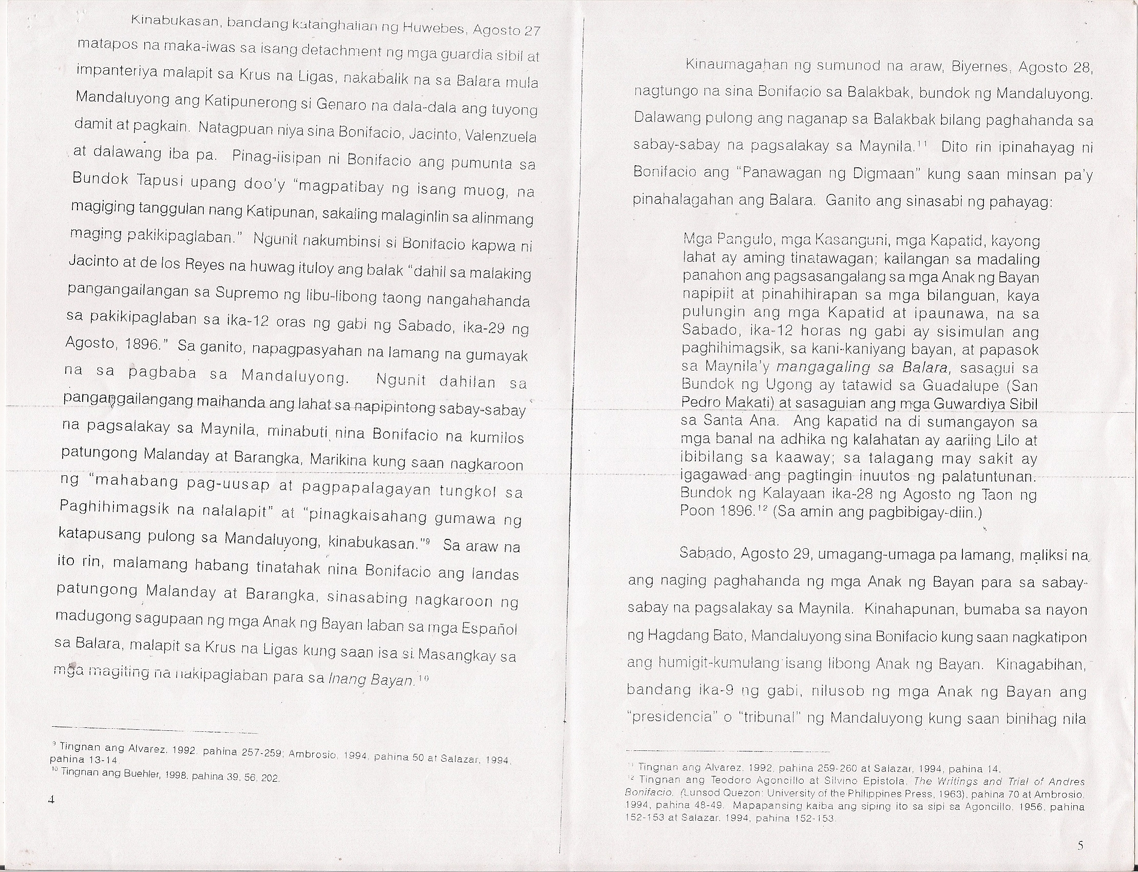 Bonifacio, Andres. “Decalogue” sa The Writings and Trial of Andres Bonifacio (translated by Teodoro A. Agoncillo and S. V. Epistola. Manila: Antonio J. Villegas; Manila Bonifacio Centennial Commission; University of the Philippines, 1963, p. 1.