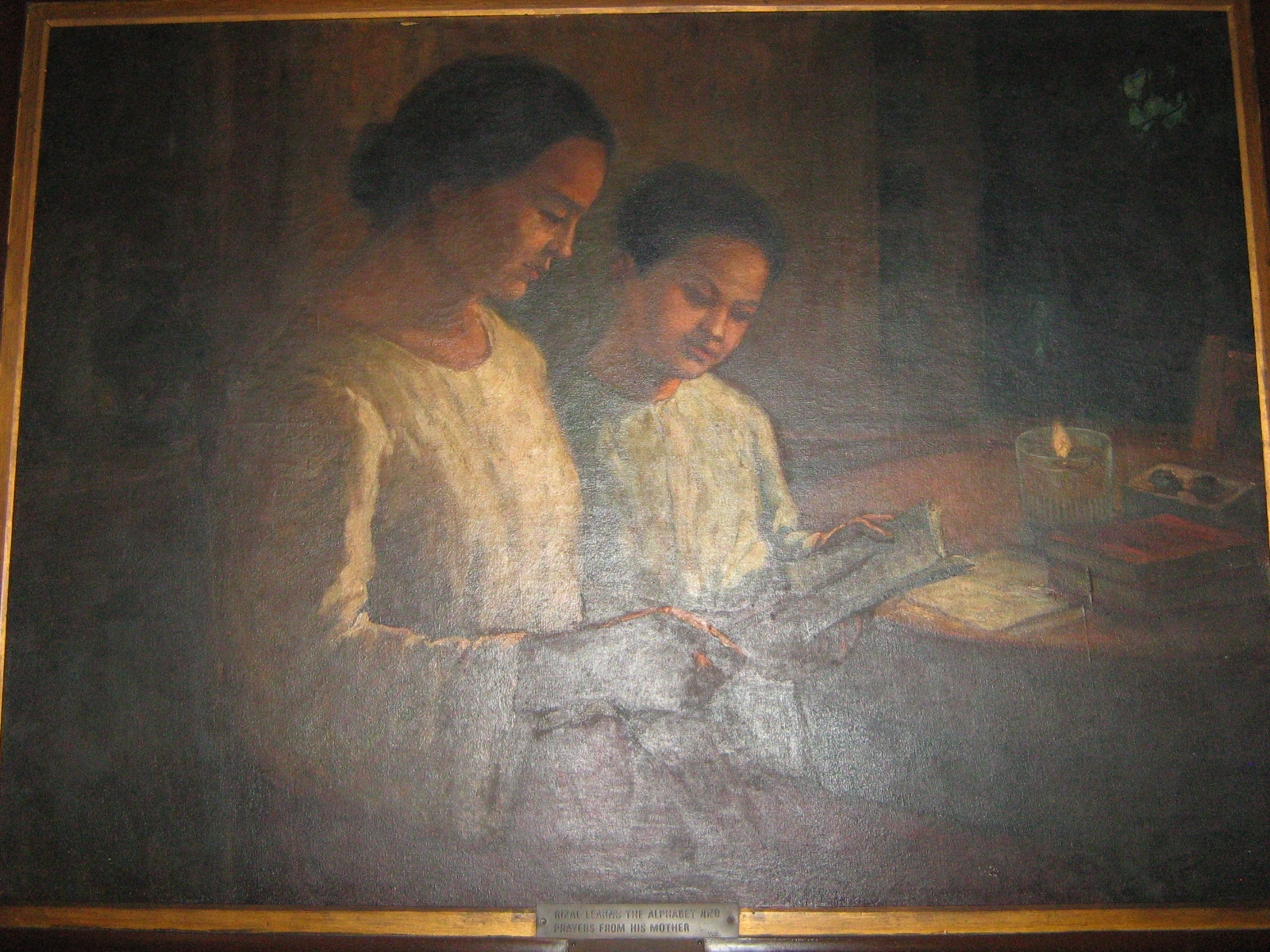 Si Ibarra (na kamukha ni Rizal) sa unang eksena ng Noli Me Tangere sa bahay ni Kapitan Tiago. Obra maestra ni Leonardo Cruz.