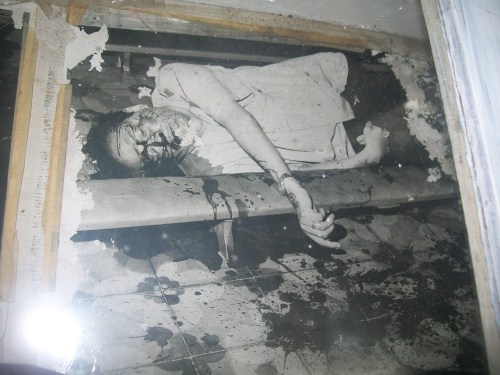 Ang duguan at walang buhay na katawan ni Cong. Floro Singson Crisologo na nakahandusay sa sahig ng Katedral ng Vigan, October 18, 1970. Mula sa Crisologo Museum.