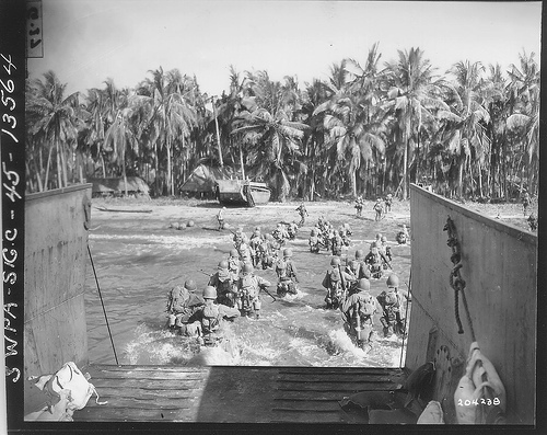 Ang pagtataas ng bandila ng Amerika sa muling nabawing isla sa pangunguna ni MacArthur. Mula sa http://steveandmarciaontherock.blogspot.com/